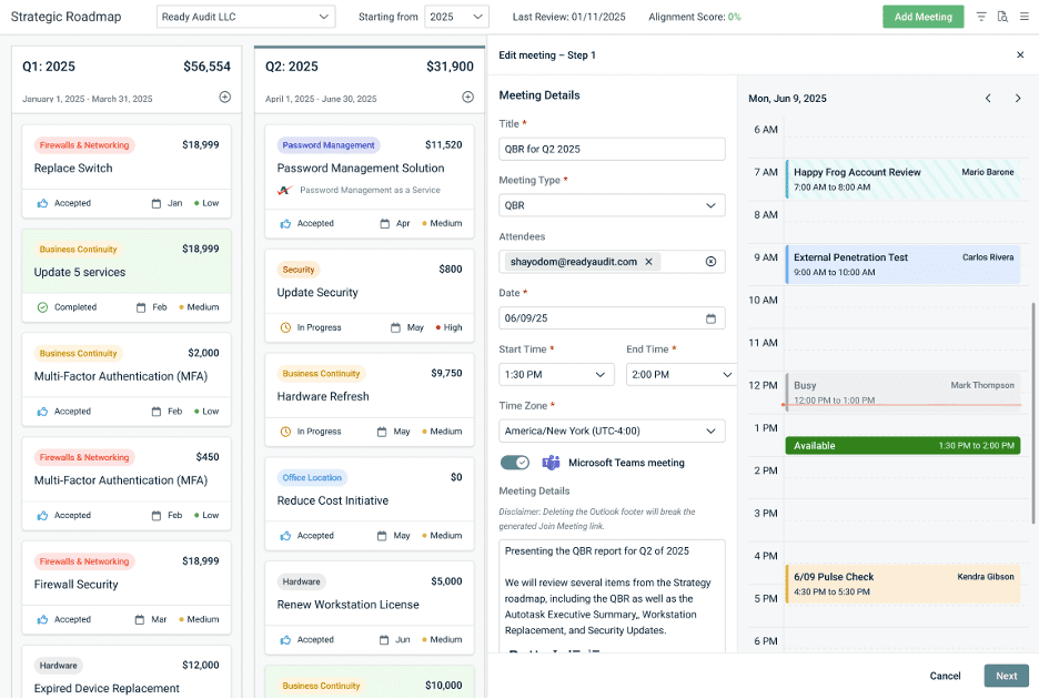 With Microsoft 365 meeting sync, myITprocess now supports the entire QBR lifecycle — from planning to scheduling to execution — in one connected experience.